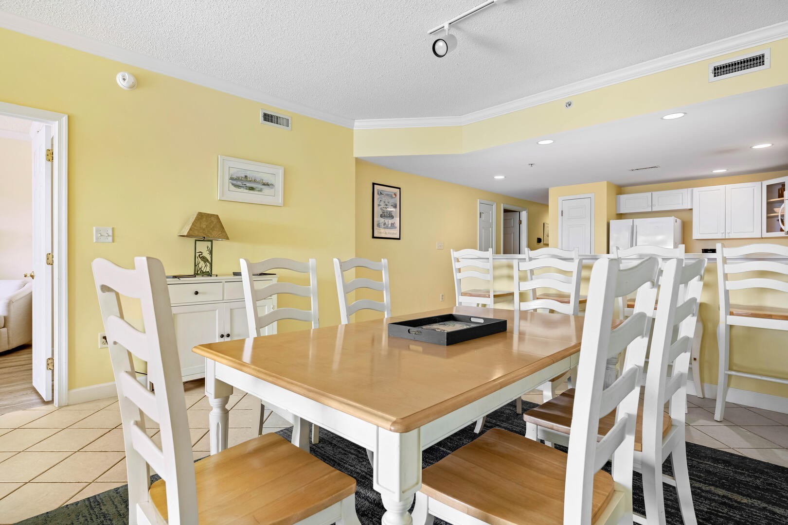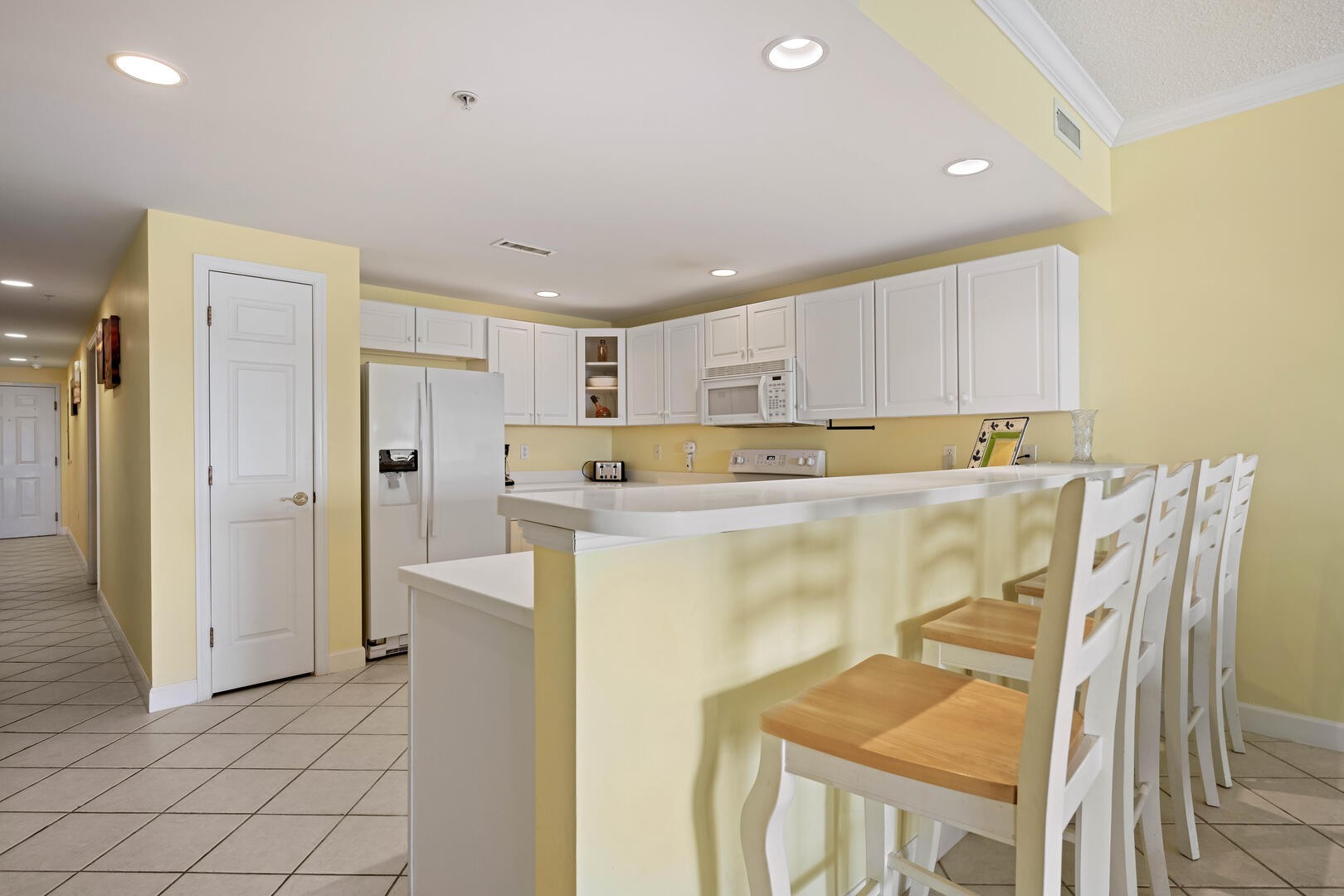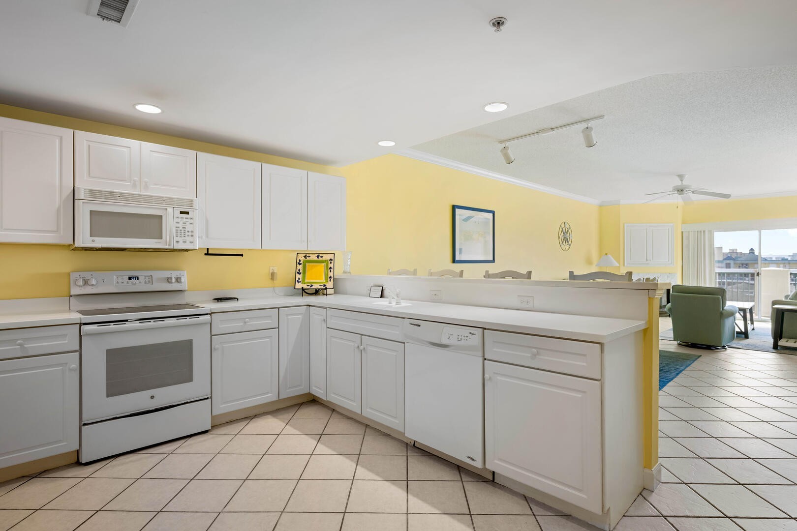 From the moment you enter, you’ll feel the mellow beach vibe that flows throughout the condo. The large, fully equipped kitchen makes vacation meal prep a breeze, with abundant counter space and seating at both the breakfast bar and dining table.