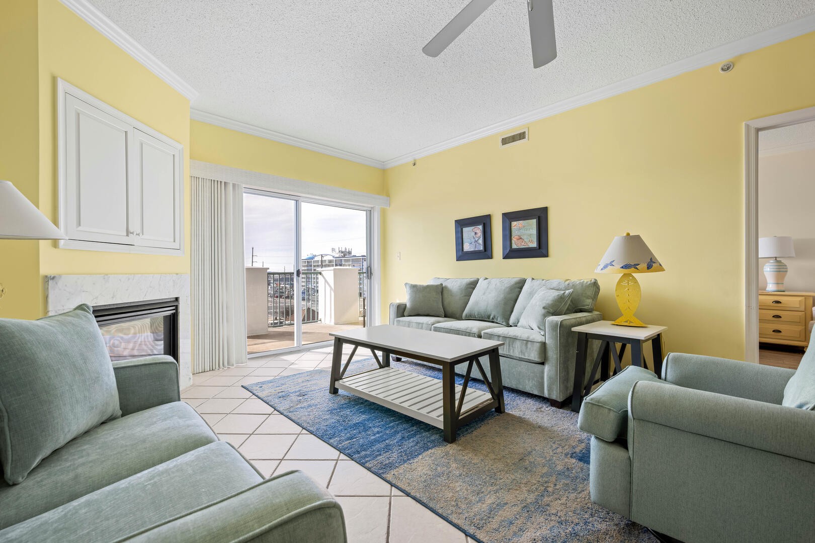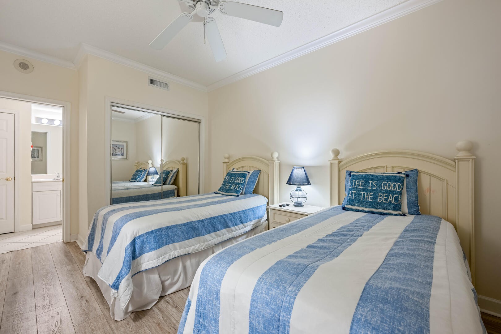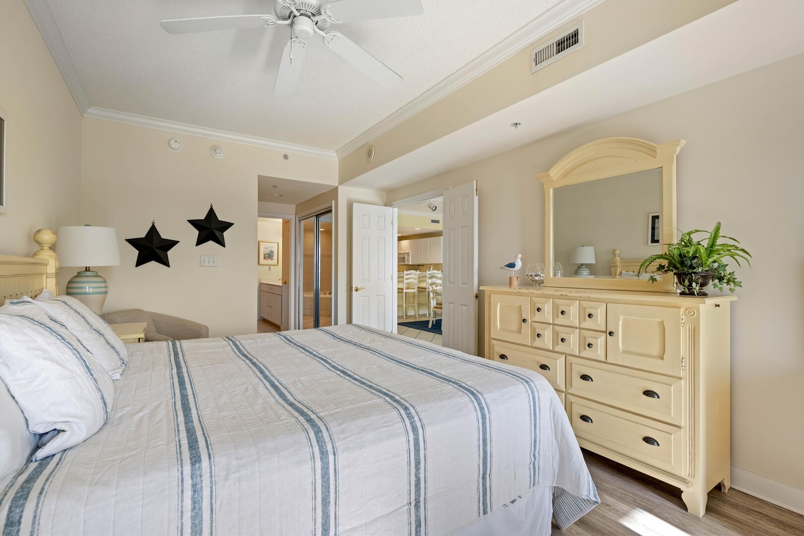 From the moment you enter, you’ll feel the mellow beach vibe that flows throughout the condo. The large, fully equipped kitchen makes vacation meal prep a breeze, with abundant counter space and seating at both the breakfast bar and dining table.