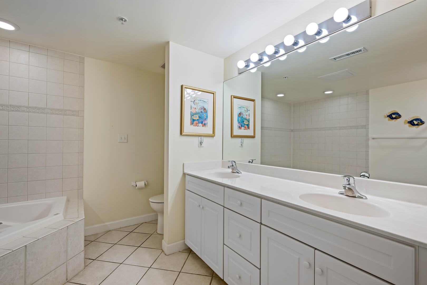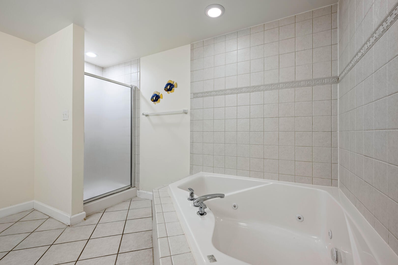 Primary bedroom: King bed, private bath with Jacuzzi tub and separate shower, balcony access