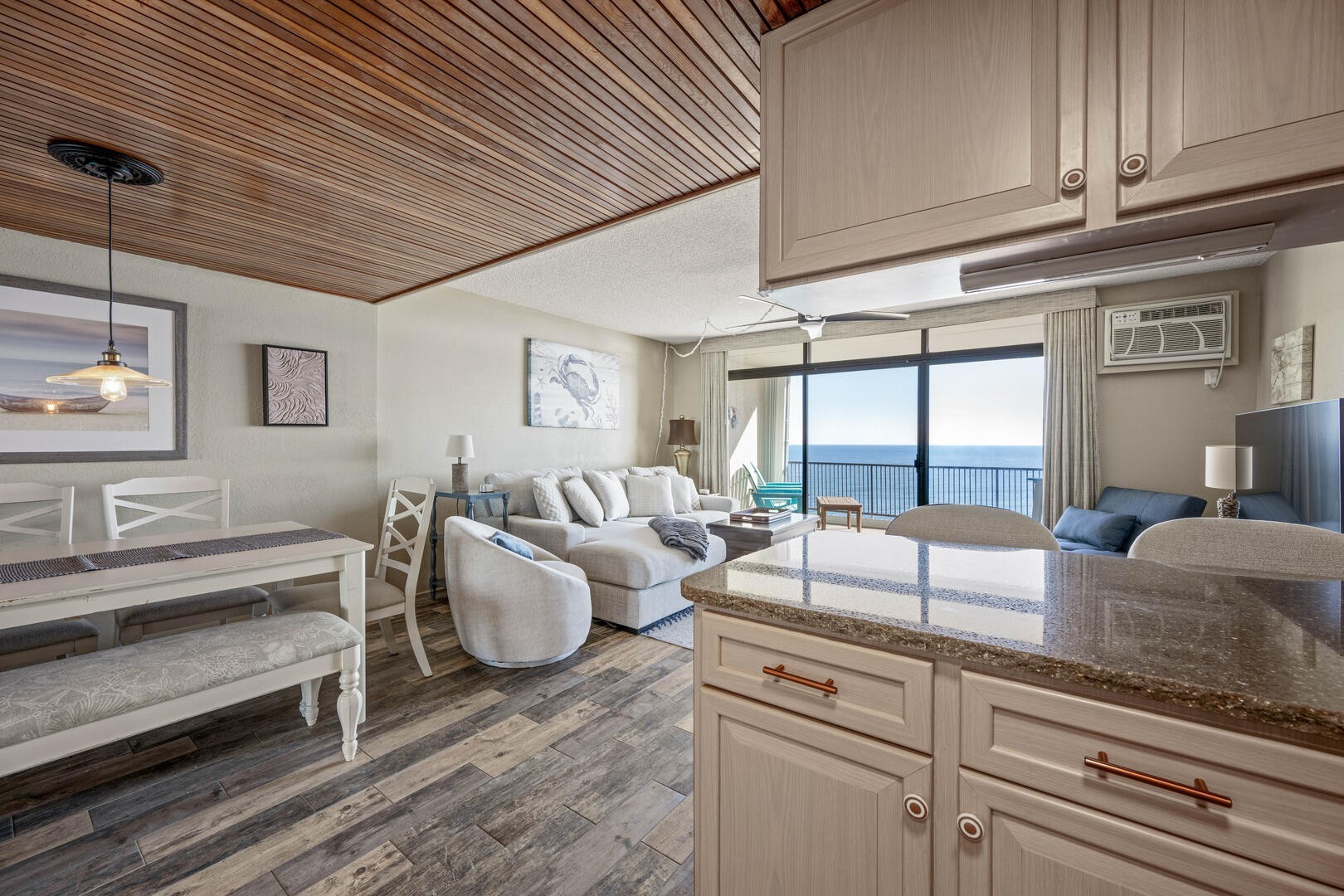 Inside, the condo feels fresh and inviting with thoughtful updates throughout. The living area is positioned to highlight the oceanfront setting, making sunrise coffee and evening breezes part of your everyday routine. The kitchen is well equipped for preparing meals and snacks, and the comfortable layout allows everyone to unwind together after a full day on the beach.